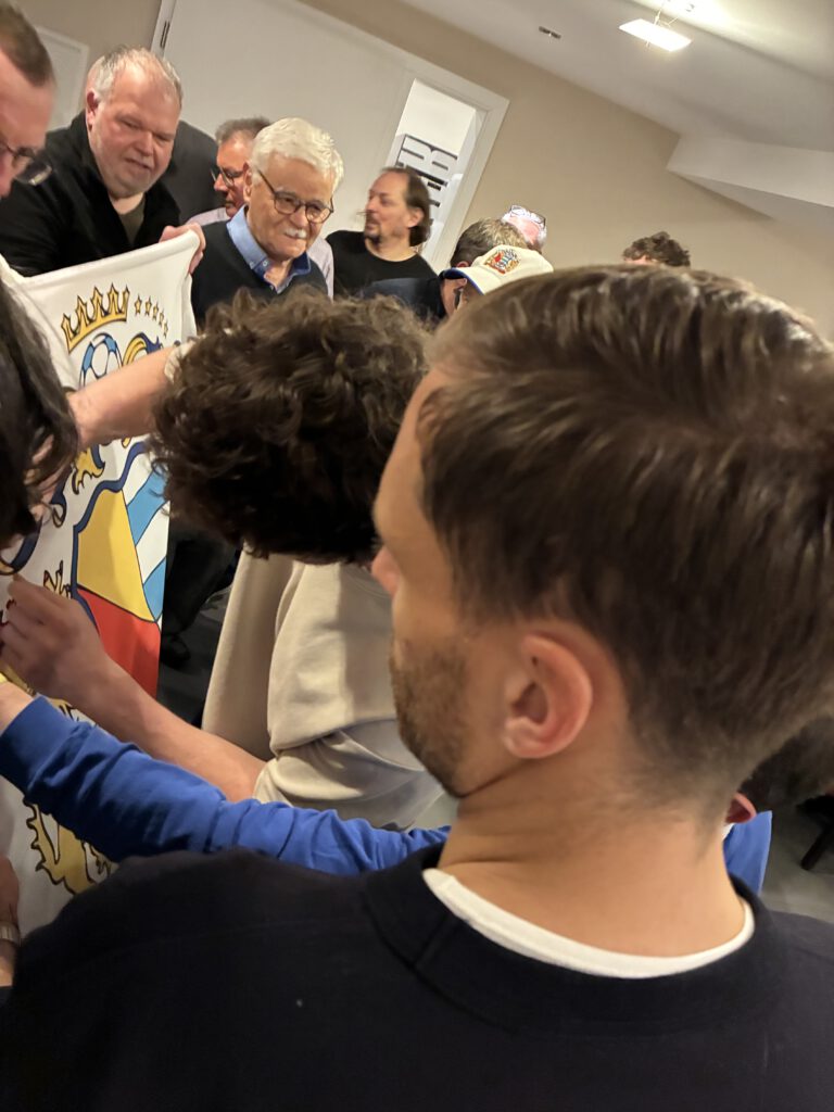 Und er suhlte sich weidlich im Kreis unserer Goalies, war er doch selbst mal einer. So begrüßte er unsere Gäste in unserer Mitte in deren Mitte und ließ keinen Zweifel an der Außergewöhnlichkeit dieses Anblicks: